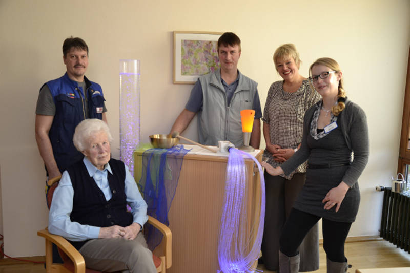 „Viele Bewohner werden in den Genuss des Snoezelen kommen und damit Wohlbefinden und Entspannung erfahren“. Mit diesen Worten übergab Ruth Fürsch, Einrichtungsleitung Haus am Nordwall zusammen mit Sponsor Roger Höhle den neuen Snoezelen-Wagen seiner Bestimmung. Roger Höhle (Geschäftsführer Fa. Höhle GmbH, Twistetal-Berndorf), unterstützte die Neuanschaffung mit einer großzügigen Spende.